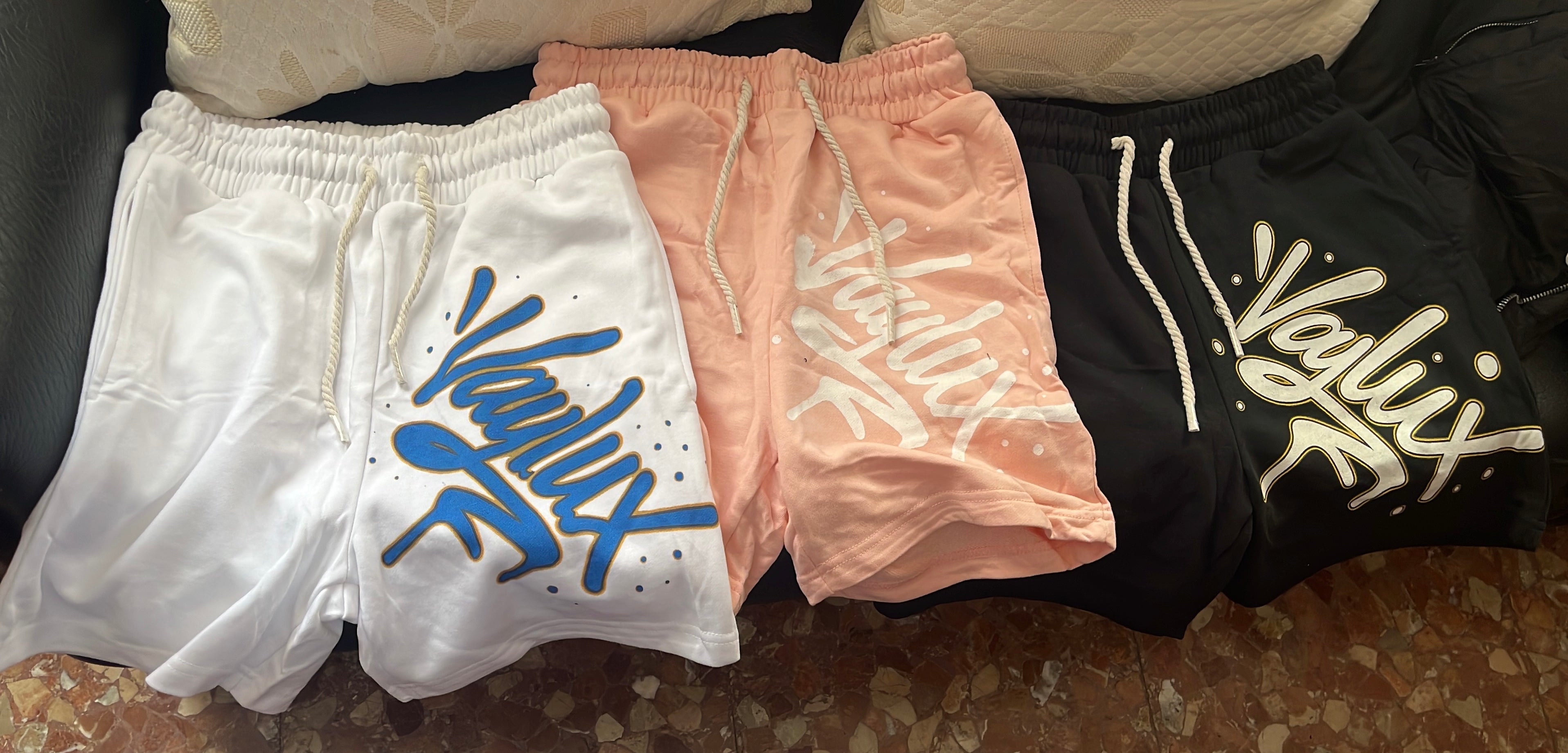 Sleek and street-ready, these black shorts stand out with a clean white graffiti-style Vaylux logo, perfect for sunset chill sessions and casual hangs.